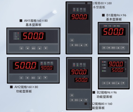■ 可选配1~4点报警输出。包括测量值上限、测量值下限,偏差上限,偏差下限,偏差基本值五种基本报警方式