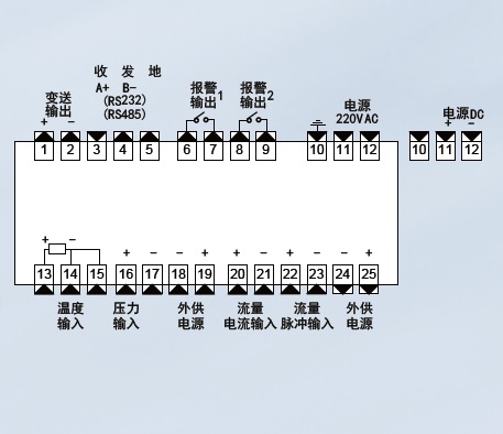 外供电源(多可选择 2 组外供电源分别用于压力、流量通道供电,订货需注明) |