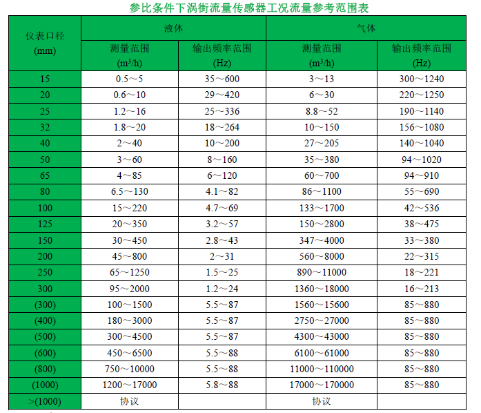 满管式涡街流量计常用口径DN15~DN300; 型号为:LUGB-21-DN15;LUGB-21-DN20;LUGB-21-DN25;LUGB-21-DN40;LUGB-21-DN50;LUGB-21-DN65;LUGB-21-DN80;LUGB-21-DN100;LUGB-21-DN125;LUGB-21-DN150;LUGB-21-DN200;LUGB-21-DN250;LUGB-21-DN300;插入式涡街流量计 适用DN300~DN1000口径涡街流量计;LUGB-21-DN300C;LUGB-21-DN350C;LUGB-21-DN400C;LUGB-21-DN450C;LUGB-21-DN500C;LUGB-21-DN600C;LUGB-21-DN700C;LUGB-21-DN800C;LUGB-21-DN900C;LUGB-21-DN1000C等.