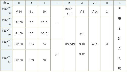 1 、带 * 的抽芯式无插入长度 75mm 规格,其它型式需另行洽商。